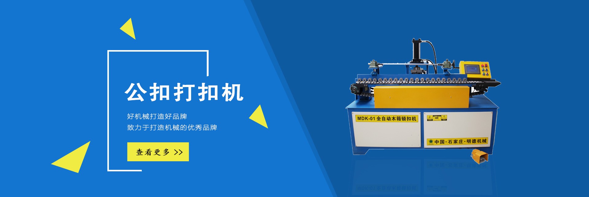 石家莊明德包裝機(jī)械有限公司是國內(nèi)專業(yè)生產(chǎn)木全自動(dòng)木箱鋼帶機(jī)、半自動(dòng)公母扣木箱打扣機(jī)、全自動(dòng)雙排孔定長切斷機(jī)、美式托盤打釘機(jī)械、托盤刨槽機(jī)、倒角機(jī)、木包裝箱、木托盤的生產(chǎn)廠家。
